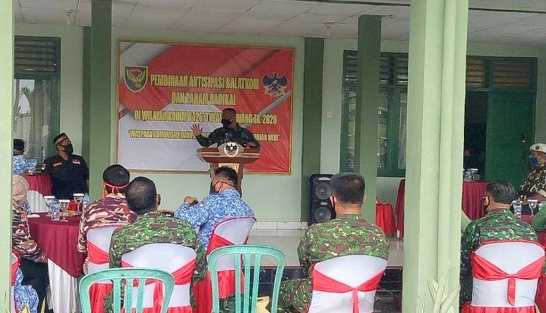 “Situasi seperti itu tentunya akan dimanfaatkan oleh pihak-pihak tertentu untuk masuk dan menanamkan faham komunisme dan radikalisme. Oleh karena itu selaku anak bangsa yang memiliki jiwa nasionalisme harus berperan aktif dalam menjaga dan memepertahankan keutuhan NKRI dengan tetap waspada terhadap segala kemungkinan yang dapat memecah belah kita dan masuknya faham komunisme dan radikalisme,” ungkap Dandim.