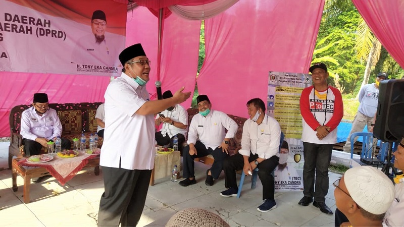 Newslampungterkini.com  – Ketua Komisi IV DPRD Provinsi Lampung H. Tony Eka Candra (TEC) menggelar Sosialisasi Peraturan Daerah (Perda) Nomor 4 Tahun 2018 Tentang Penyelenggaraan Pembangunan Ketahanan Keluarga yang dilaksanakan di Desa Palas Jaya Kecamatan Palas Kabupaten Lampung Selatan, Minggu (28/6/2020).