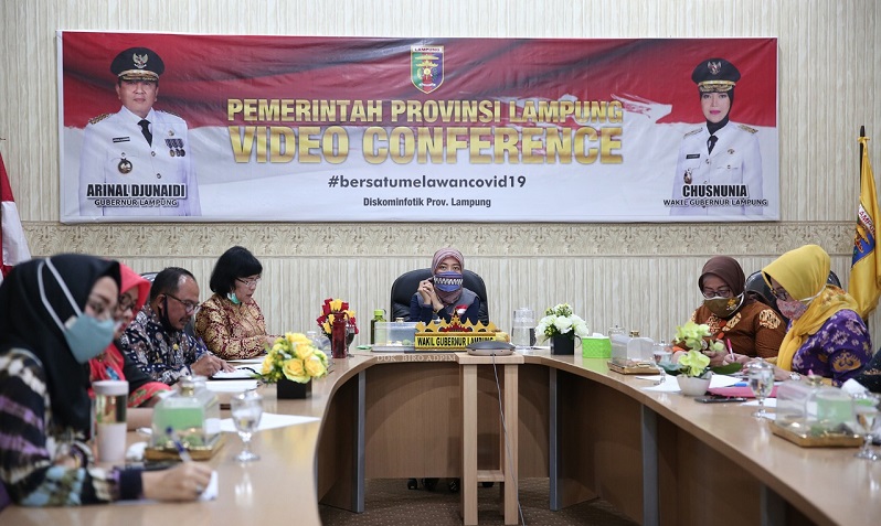 Hal itu diungkapkan Wakil Gubernur Lampung Chusnunia Chalim (Nunik) saat membuka Rapat Evaluasi Kinerja Pusat Pelayanan Terpadu Pemberdayaan Perempuan dan Anak (P2TP2A) Kabupaten/Kota Se-Provinsi Lampung (virtual meeting), di Ruang Command Center, Dinas Kominfotik Provinsi Lampung, Bandarlampung, Jum’at (10/7/2020).