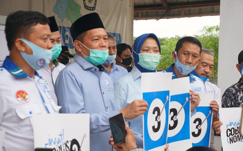 “Berdasarkan PKPU 10 Tahun 2020 Pasal 50C Ayat 7 huruf a, penetapan nomor hanya melanjutkan nomor urut yang sudah ditetapkan sebelumnya. Karena nomor 1 dan 2 sudah ditetapkan, pasangan Hipni-Melin mendapat nomor urut 3,” ujar Ansurasta Razak.