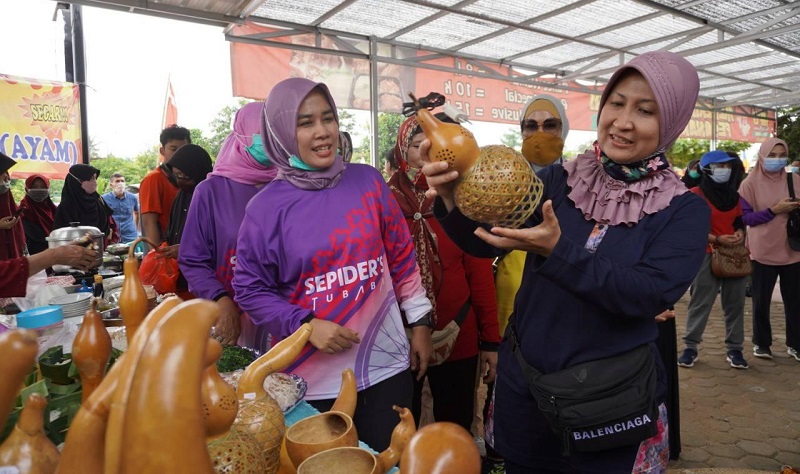 ewslampungterkini.com – Ketua TP-PKK kabupaten Tulang Bawang Barat Ny.Kornelia Umar bersama Ketua Persit Kartika Candra Kirana PD II Sriwijaya Ny.Shinta Agus Suhardi. beserta rombongan melakukan silahturahmi dan gowes bersama sekaligus mengunjungi Pusat Ekonomi Kreatif di Kabupaten Tulang Bawang Barat, Panaragan, Sabtu (10/10/2020).