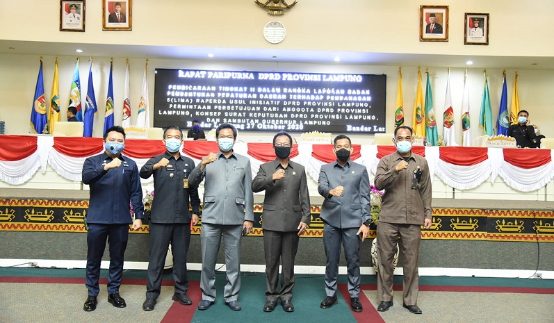 Lima rancangan peraturan daerah usul inisiatif DPRD Provinsi Lampung yang akan disetujui menjadi Perda yaitu: Pertama Perda Pengembangan sumberdaya pariwisata berbasis ekonomi kreatif, kedua Perda Penyelengaraan kesejahteraan sosial bagi penyandang disabilitas, Ketiga Perda pengakuan dan perlindungan hak masyarakat hukum adat lampung, Keempat Perda kerjasama antar daerah, kelima Perda penghapusan tindak kekerasan terhadap perempuan dan anak di provinsi Lampung.