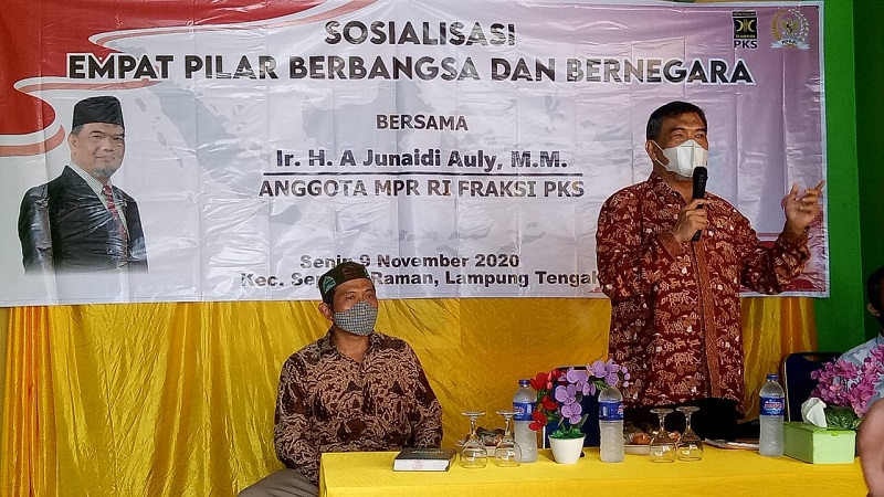 “Idealnya setiap undang-undang tidak bertentangan dengan pilar kebangsaan, undang-undang harusnya dapat memperkuat dan mendukung nilai-nilai pancasila dan UUD 1945,” ujar Junaidi dalam agenda Sosialisasi Empat Pilar Berbangsa dan Bernegara di Desa Rama Indra, Seputih Raman, Lampung Tengah. Senin (9/11/2020)