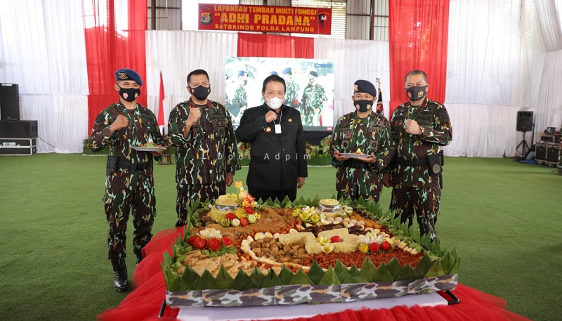 Pada syukuran itu, Gubernur Arinal bersama dengan Kapolda Lampung Irjen Pol Purwadi Arianto dan Komandan Satuan Brimob Polda Lampung Kombes Pol Donyar Kusumadji melakukan pemotongan tumpeng.