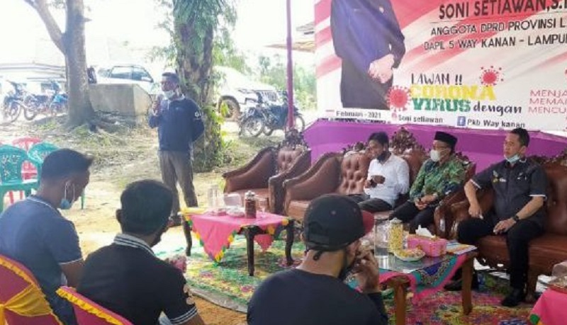 Newslampungterkini.com – Anggota DPRD Provinsi Lampung, Soni Setiawan sosialisasi Peraturan Daerah (Sosperda) nomor 3 Tahun 2020 tentang Adaptasi Kebiasaan Baru di Kampung Tanjung Mas, Kecamatan Negeri Besar, Kabupaten Way Kanan, Sabtu (13/02/2021).