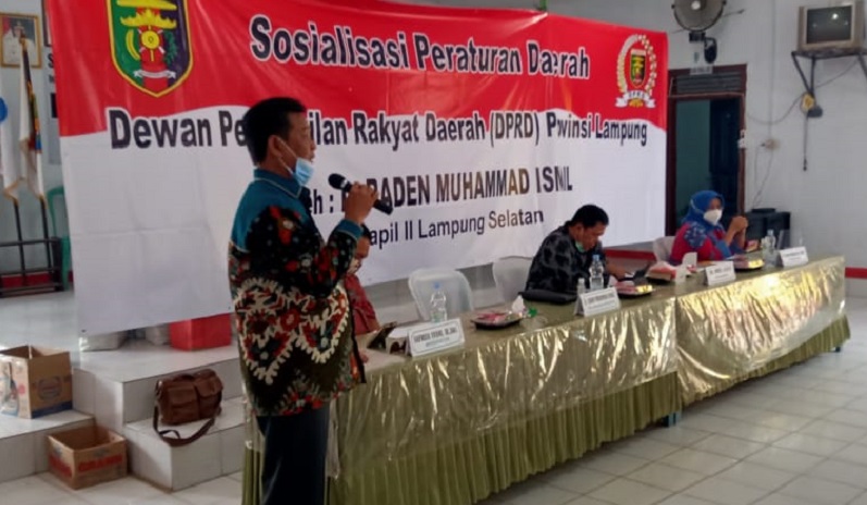 Newslampungterkini.com – Anggota DPRD Provinsi Lampung, Ir. Raden Muhammad Ismail Sosialisasi Peraturan Daerah nomor 3 tahun 2020 tentang Adaptasi Kebiasaan Baru Dalam Pencegahan dan Pengendalian Covid-19 di Desa Suka Damai, Kecamatan Natar, Kabupaten Lampung Selatan, sabtu 13 Maret 2021.