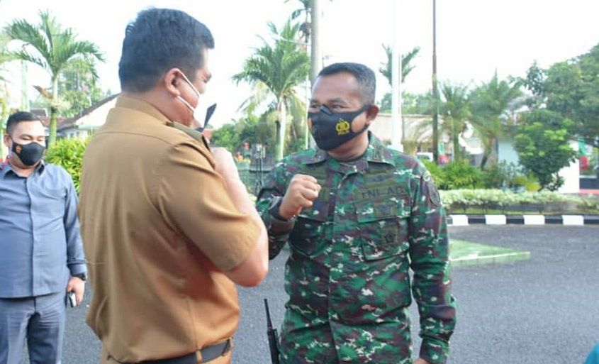 Bupati Lampung Tengah Musa Ahmad saat ramah tamah menyampaikan kepada Komandan Korem 043/Gatam untuk selalu bersinergi dengan Pemerintah Kabupaten Lampung Tengah guna bersama sama menangani dan menekan penularan virus covid-19 di Kabupaten Lampung Tengah.