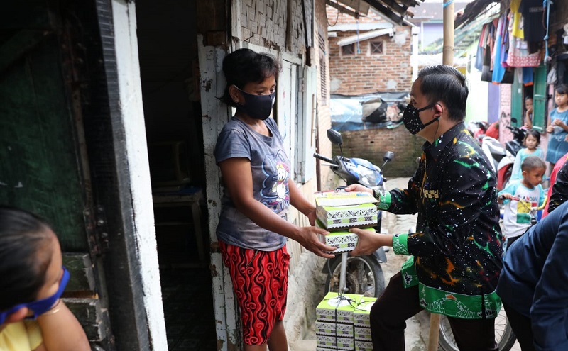 Newslampungterkini.com – Memasuki hari ke-8 Bulan Suci Ramadhan 1442 Hijriah, Ketua Umum Lembaga Koordinasi Kesejahteraan Sosial (LKKS) Provinsi Lampung Riana Sari Arinal membagikan hidangan berbuka puasa (nasi kotak) untuk warga kurang mampu, lansia, dan anak terlantar, di Kelurahan Kuripan, Kecamatan Teluk Betung Barat, Bandar Lampung, Selasa (20/4/2021).
