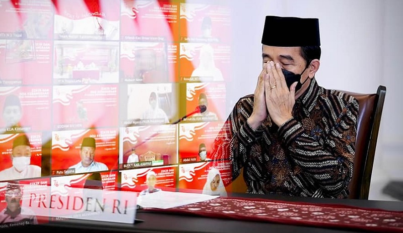 Newslampungterkini.com – Presiden RI Joko Widodo (Jokowi) menghadiri Zikir dan Doa Kebangsaan 76 Tahun Indonesia Merdeka, yang digelar secara virtual, Minggu (01/08/2021) malam.