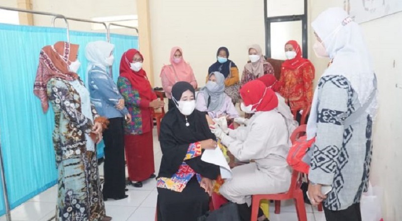 Vaksinasi yang digelar di Gedung Serba Guna  Radin Inten, Kecamatan Penengahan, pada Jumat (10/9/2021), dihadiri langsung Ketua Tim Penggerak PKK Kabupaten Lampung Selatan Hj. Winarni Nanang Ermanto.