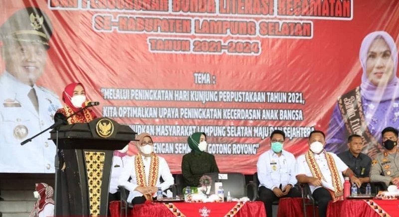 Hal itu diungkapkan Bunda Winarni dalam acara Hari Kunjung Perpustakaan dan Bulan Gemar Membaca serta Pengukuhan 17 Bunda Literasi Tingkat Kecamatan se-Kabupaten Lampung Selatan yang dipusatkan di Lapangan Tenis Indoor, Kalianda, Rabu (3/11/2021).