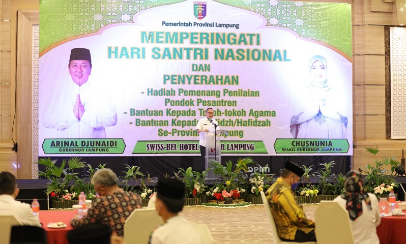 Pesan Gubernur itu disampaikan Asisten Bidang Pemerintahan dan Kesejahteraan Rakyat Qudrotul Ikhwan, dalam acara peringatan hari santri dan sambung tali asih kepada tokoh-tokoh Agama, dan Hafidzh/Hafidzah se-Provinsi Lampung, di Ballrom Hotel Swiss-Bel Hotel, Kamis (16/12/2021).