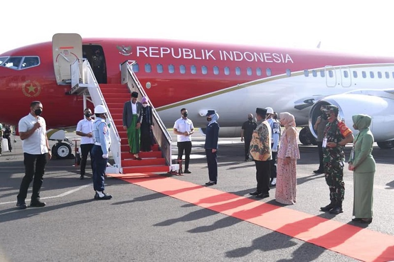 Newslampungterkini.com – Presiden Joko Widodo beserta Ibu Iriana Joko Widodo tiba di Bandara Internasional Radin Inten II, Kabupaten Lampung Selatan, sekitar pukul 07.45 WIB, Rabu, 22 Desember 2021.