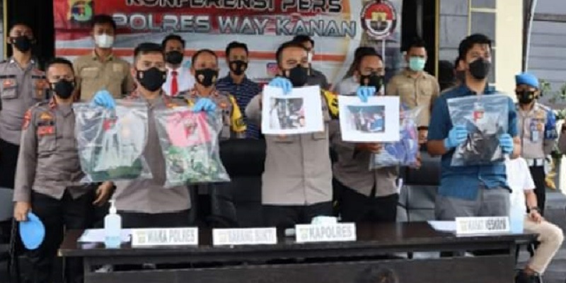 Pengungkapan kasus itu disampaikan Kapolres Way Kanan AKBP Teddy Rachesna S.H S.I.K M.Si didampingi Wakapolres Way Kanan Kompol Zainul Fachry S.I.K, Kasatreskrim AKP Andre Try Putra, S.I.K, M.H dan Kapolsek Way Tuba AKP Mahbub Junaidi S.E, di ruang lobi Mako Polres Way Kanan, pada Jum’at 4 Maret 2022.