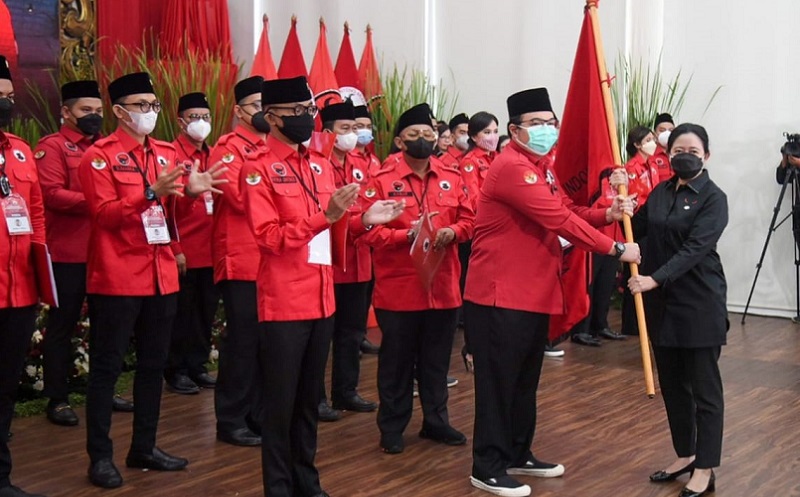 Upacara pelantikan dan pengambilan sumpah dilakukan oleh Ketua DPP PDIP bidang politik dan hubungan antarlembaga Puan Maharani dilaksanakan di kantor pusat partai di Jalan Diponegoro, Menteng, Jakarta Pusat, Kamis (17/3/2022).