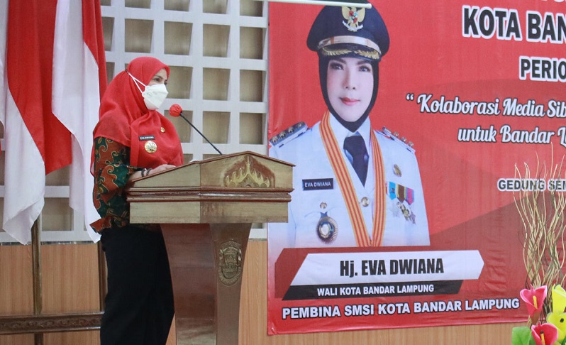 Newslampungterkini.com – Walikota Bandar Lampung Eva Dwiana mengajak insan pers yang tergabung dalam Serikat Media Siber Indonesia (SMSI) Kota Bandar Lampung untuk menjadi teladan dan bersama-sama membangun Bandar Lampung lebih baik, serta memberikan yang terbaik untuk masyarakat Kota Bandar Lampung.