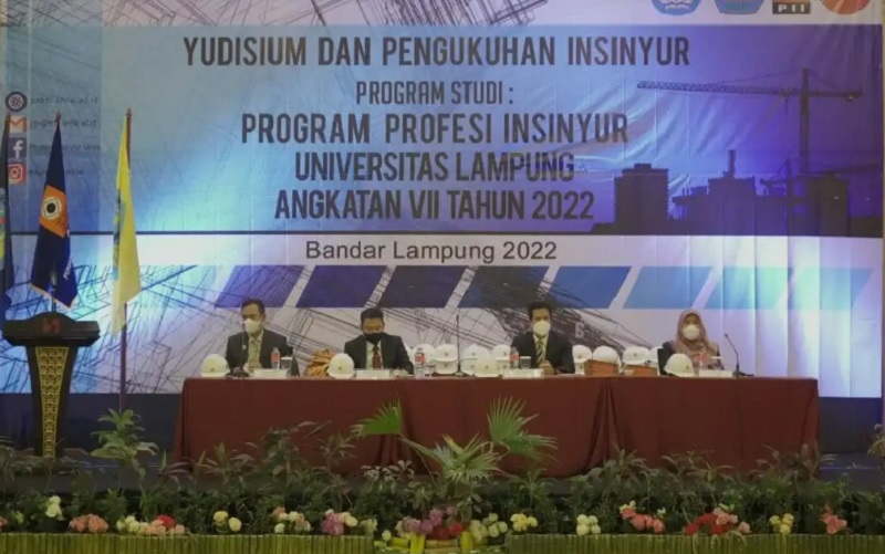Newslampungterkini.com – Program Studi Pendidikan Profesi Insinyur (PSPPI) Fakultas Teknik (FT) Universitas Lampung (Unila) menyelenggarakan pengukuhan 62 insinyur angkatan VII, di Swiss Bellhotel, Bandar Lampung, Minggu (6/3/2022) siang.