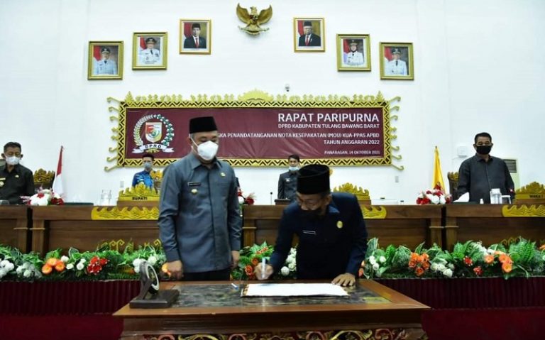 Berita Terkini Tulang Bawang Barat Bupati dan DPRD Tubaba Tandatangani Nota Kesepakatan KUA-PPAS APBD 2022 14 Oktober 2021 News Lampung Terkini Newslampungterkini.com – Rapat Paripurna Penandatanganan Nota Kesepakatan (MoU) KUA-PPAS APBD Tahun Anggaran 2022, diruang Paripurna…