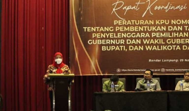 Bandar Lampung Berita Terkini Walikota Eva Dwiana Hadiri Rakor dan Sosialisasi Peraturan KPU Nomor 8 Tahun 2022 25 November 2022 News Lampung Terkini Newslampungterkini.com – Walikota Bandar Lampung, Hj. Eva Dwiana menghadiri dan memberi sambutan pada Rapat Koordinasi…